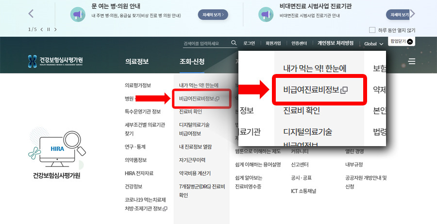 건강보험심사평가원에서 진료비용 비교 방법